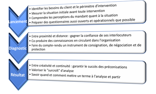 L’auditeur ne peut que défendre le rapport qu’il remet à son client, sans pour autant garantir qu’il sera, par ce dernier, ni accepté dans ses conclusions ni suivi dans ses préconisations. Mais clarifions le propos : il ne s’agit pas pour nous de prétendre « avoir raison » mais bien plutôt d’œuvrer afin que notre commanditaire « se donne à lui-même raison ». [2]