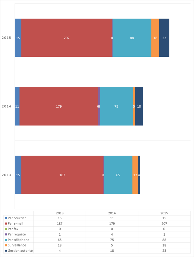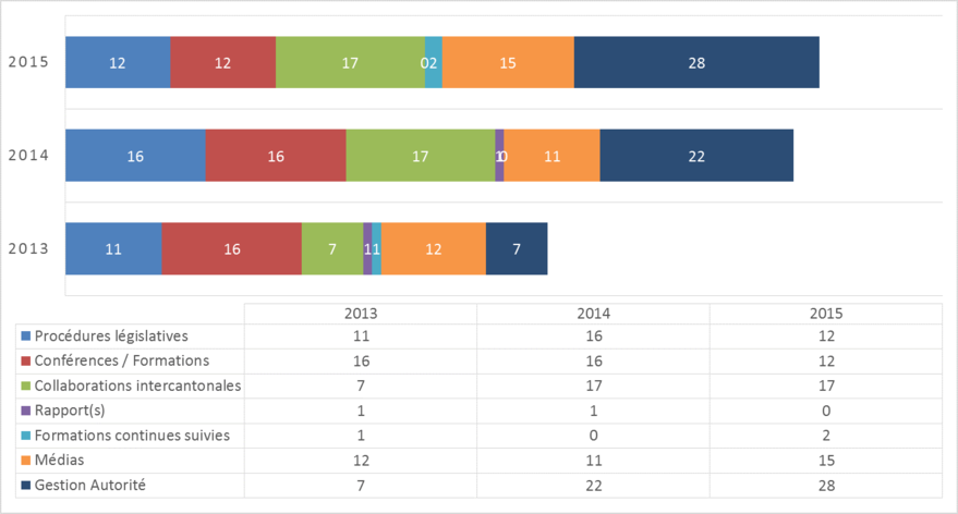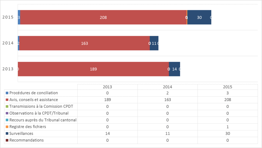 En 2015, le PPDT a publié quarante-et-un avis et prises de position en matière de protection des données et treize avis et prises de position en matière de transparence.