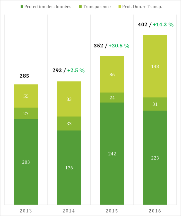 Quoi qu’il en soit, le volume des dossiers traités semble montrer un intérêt grandissant pour la protection des données et la transparence.