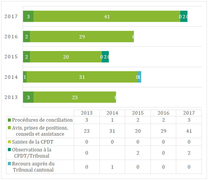 Comme chaque année, le PPDT cherche à donner des réponses rapides et aussi claires que possible, de manière à ce que le demandeur puisse mettre en œuvre l'avis reçu sans trop se torturer l'esprit. Vu que la CPDT n'a été saisie que deux fois en 2017, sur six requêtes traitées (une fois sur six en 2016), la réalisation de cet objectif paraît rester sur le bon chemin.