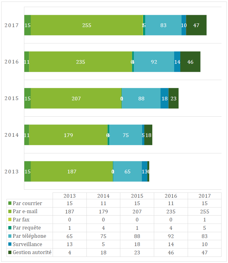À relever que le premier trimestre 2018 laisse présager à nouveau une augmentation se situant entre celle de 2015 et 2016. Il est espéré que la mise sur pied d’un site aussi complet et accessible que possible réussisse à terme à stabiliser le nombre de sollicitations.