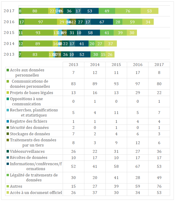 En 2017, le PPDT a publié quarante-six avis et prises de position en matière de protection des données et huit en matière de transparence.