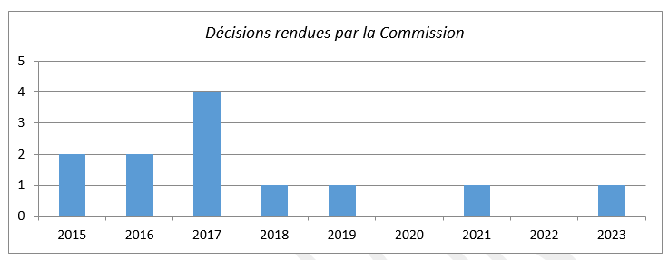 L’année 2023, à l’instar des années précédentes, n’a pas été marquée par de nombreuses décisions de la Commission ; il s’est surtout agi d’une année de transition, suite au remplacement de plusieurs de ses membres.